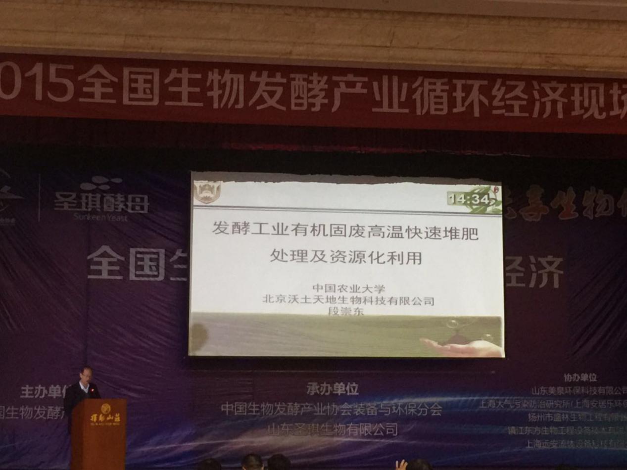 北京沃土天地生物科技有限公司作為特邀嘉賓參加會議,由公司段崇東總工程師就“發(fā)酵工業(yè)有機(jī)廢棄物高溫快速堆肥處理及資源化利用”在會上作報(bào)告。
